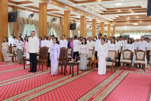 นอกจากนี้ ภายในงานยังได้รับการสนับสนุนจากสำนักงานพัฒนาชุมชนจังหวัด สำนักงานพัฒนาชุมชนอำเภอทั้ง 13 อำเภอ และพุทธศาสนิกชนผู้มีจิตศรัทธา ร่วมกันจัดตั้ง “โรงทานปันน้ำใจ” เพื่อให้บริการอาหารและเครื่องดื่มแก่ผู้ที่มาร่วมงานบุญในครั้งนี้ ซึ่งบรรยากาศเต็มไปด้วยความอิ่มบุญและพลังความสามัคคีตามหลัก “บวร” (บ้าน วัด ราชการ) ที่ได้ร่วมเป็นเจ้าภาพและร่วมทำบุญทอดผ้าป่าฯ โดยมียอดผู้มีจิตศรัทธาร่วมทำบุญสมทบกองทุนพัฒนาเด็กชนบทฯ จังหวัดมหาสารคาม ประจำปี 2569 ในครั้งนี้ เป็นเงินจำนวนทั้งสิ้น 595,714 บาท