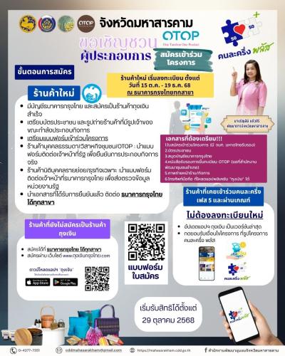 ✨ โอกาสเพิ่มยอดขาย OTOP !!! จังหวัดมหาสารคาม ชวนเข้าร่วมโครงการ "คนละครึ่ง พลัส" ✨