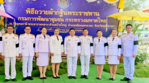 สำนักงานพัฒนาชุมชนจังหวัดมหาสารคาม นำโดย นางธัญสินี แก้วศิริ พัฒนาการจังหวัดมหาสารคาม พร้อมด้วย ผู้อำนวยการกลุ่มงานฯ พัฒนาการอำเภอ และนักวิชาการพัฒนาชุมชน สำนักงานพัฒนาชุมชนจังหวัดมหาสารคาม เข้าร่วมในพิธีฯ ณ วัดอุดมธานี (พระอารามหลวง) จังหวัดนครนายก