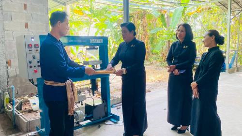 สำหรับการลงพื้นที่ในช่วงเช้า คณะผู้ตรวจราชการฯ ได้เยี่ยมชมและติดตามการดำเนินงานในจุดสำคัญ ได้แก่ “ไร่แสนดี” (ศูนย์เรียนรู้ฯ) ณ บ้านหนองยาง หมู่ที่ 7 ต.หัวขวาง ของนายบรรจง แสนยะมูล และ นางพรลภัส เอแวนซ์ ผู้ประกอบการ OTOP เพื่อติดตามการใช้ประโยชน์จากครุภัณฑ์ที่ได้รับการสนับสนุนจากสำนักงานพัฒนาชุมชนจังหวัดมหาสารคาม ในการเพิ่มประสิทธิภาพการผลิต และเยี่ยมชม “แปลงโคก หนอง นา” ของนางละมุล ถูพะอ่าง ณ บ้านหนองโก หมู่ที่ 6 ต.แพง เพื่อติดตามความก้าวหน้าโครงการฯ