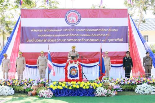 โดยกิจกรรมภายในงานประกอบด้วยพิธีเจริญพระพุทธมนต์เพื่อความเป็นสิริมงคล และพิธีกระทำสัตย์ปฏิญาณต่อธงชัยประจำกอง ซึ่ง นายกองเอกสมเกียรติ วิริยะกุลนันท์ ได้นำกล่าวคำปฏิญาณตนและอ่านสารของ นายกองใหญ่ อนุทิน ชาญวีรกูล ผู้บัญชาการกองอาสารักษาดินแดน พร้อมมอบโอวาทโดยเน้นย้ำให้น้อมนำพระราชดำรัส "รู้รักสามัคคี" และ "ปรัชญาของเศรษฐกิจพอเพียง" มาเป็นหลักในการปฏิบัติหน้าที่เพื่อบำบัดทุกข์ บำรุงสุข ให้แก่ประชาชน