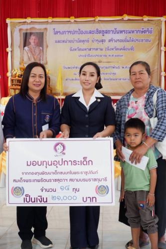 โดยผู้ว่าราชการจังหวัดมหาสารคาม พร้อมด้วยรองผู้ว่าราชการจังหวัดมหาสารคาม หัวหน้าส่วนราชการ คณะกรรมการเหล่ากาชาดจังหวัดมหาสารคาม และผู้บริหารองค์กรปกครองส่วนท้องถิ่น ได้ร่วมมอบทุนอุปการะเด็กฯ ให้แก่เด็กยากจนและด้อยโอกาส จำนวน 14 ทุน (ทุนละ 1,500 บาท) รวมเป็นเงินทั้งสิ้น 21,000 บาท