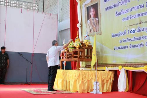 พช.มหาสารคาม ร่วมกิจกรรมปกป้องสถาบันฯ และ "จังหวัดเคลื่อนที่" พร้อมมอบทุนอุปการะเด็กจากกองทุนพัฒนาเด็กชนบท ในพระราชูปถัมภ์ฯ อำเภอกุดรัง