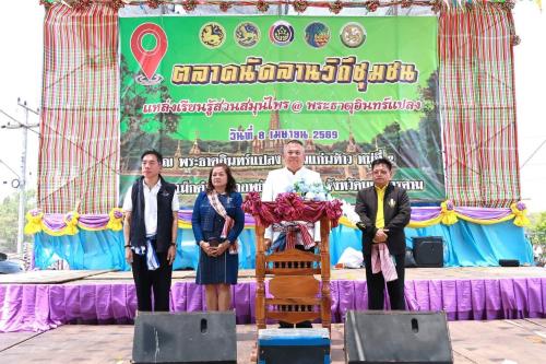 พช.มหาสารคาม ร่วมเปิด “ตลาดนัดลานวิถีชุมชน แหล่งเรียนรู้สวนสมุนไพร @พระธาตุอินทร์แปลง” เพื่อขยายช่องทางการจำหน่ายสินค้า ผลิตภัณฑ์ OTOP และสินค้าทางการเกษตร