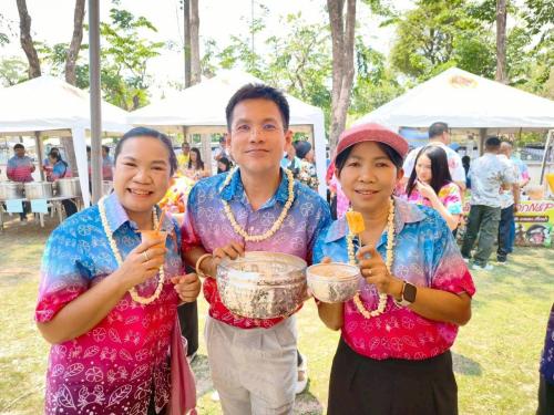 ในการนี้ นางสาวศศิณัฏฐา แก้วศิริ พัฒนาการจังหวัดมหาสารคาม พร้อมด้วย ผู้อำนวยการกลุ่มงาน พัฒนาการอำเภอเมืองมหาสารคาม และเจ้าหน้าที่สำนักงานพัฒนาชุมชนจังหวัดมหาสารคาม ได้เข้าร่วมพิธีรดน้ำขอพรดังกล่าวอย่างพร้อมเพรียง พร้อมกันนี้ ยังได้นำไอศกรีม จำนวน 1 ถัง มาร่วมตั้งจุดบริการแจกฟรีให้กับผู้ที่มาร่วมงาน ซึ่งช่วยสร้างสีสันและเติมเต็มบรรยากาศแห่งความสุข ความสดชื่น และความอบอุ่นในช่วงเทศกาลสงกรานต์ได้อย่างดียิ่ง